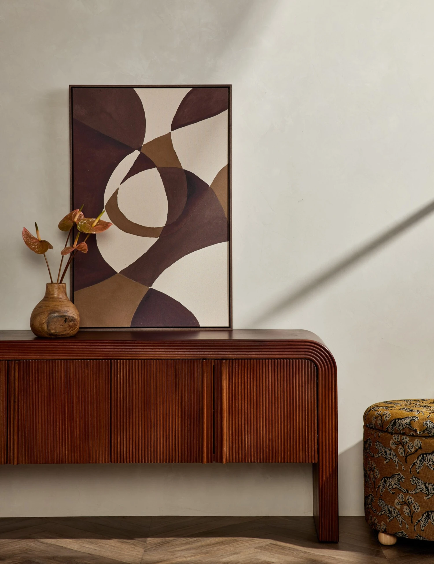 Visual Contrast is a Los Angeles-based fine art studio that produces limited-edition runs of high-quality wall art. Flowing lines of brown and ochre bring a quiet drama to this diptych wall print. The neutral backdrop and earthy tones style this set for poise and sophistication in a modern setting.