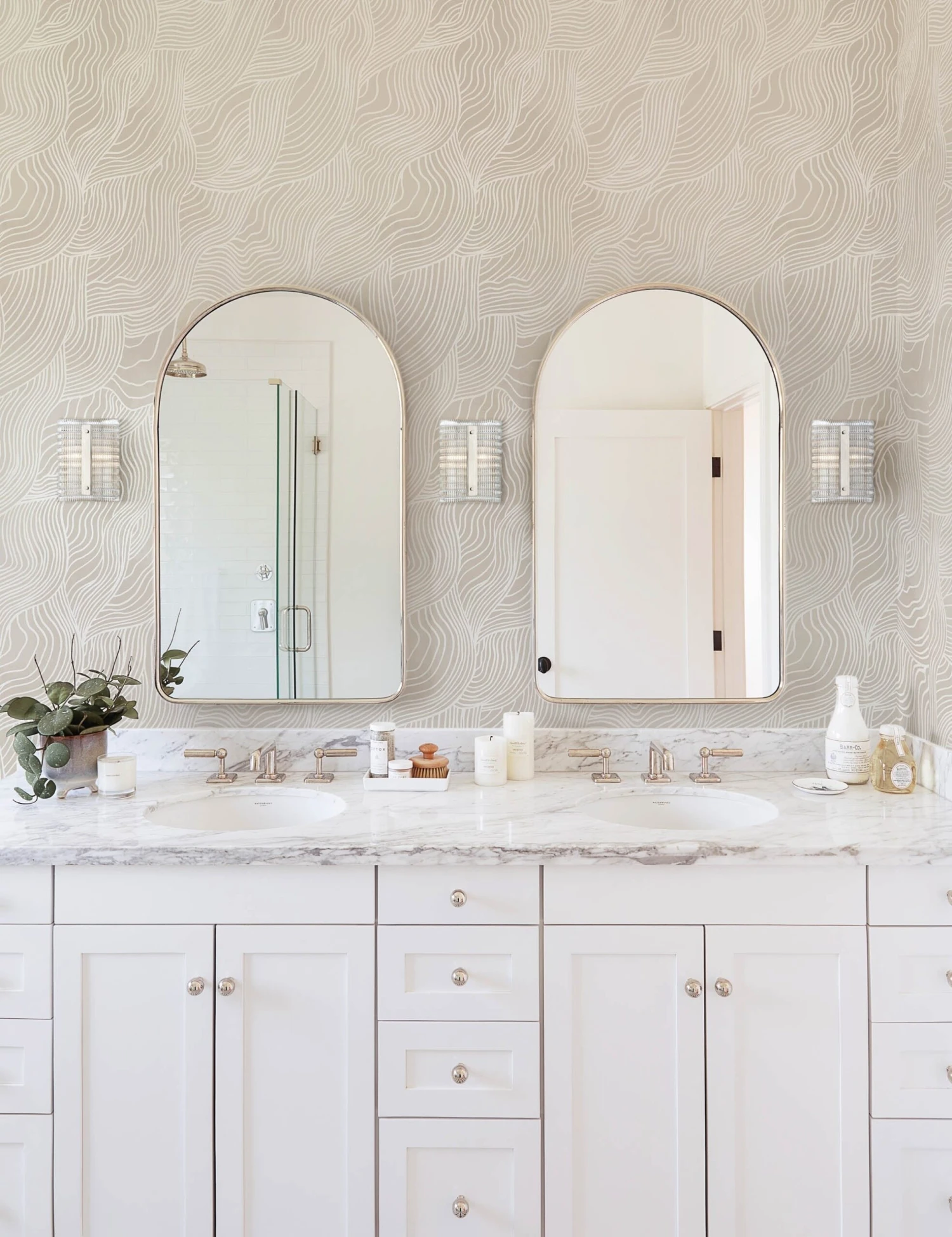 Stylish, abstract waves soothingly ripple to create this geometric Alina Wallpaper. The intricate line work elegantly combines with its neutral color palette to make for a standout, versatile print. Whether styled in a bedroom, home office, or powder bath, we love this home wallpaper for adding polish to your space..