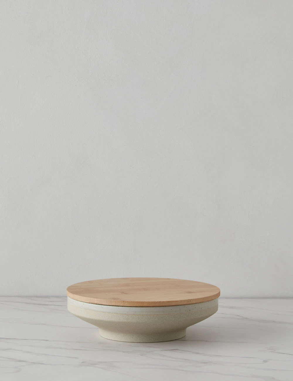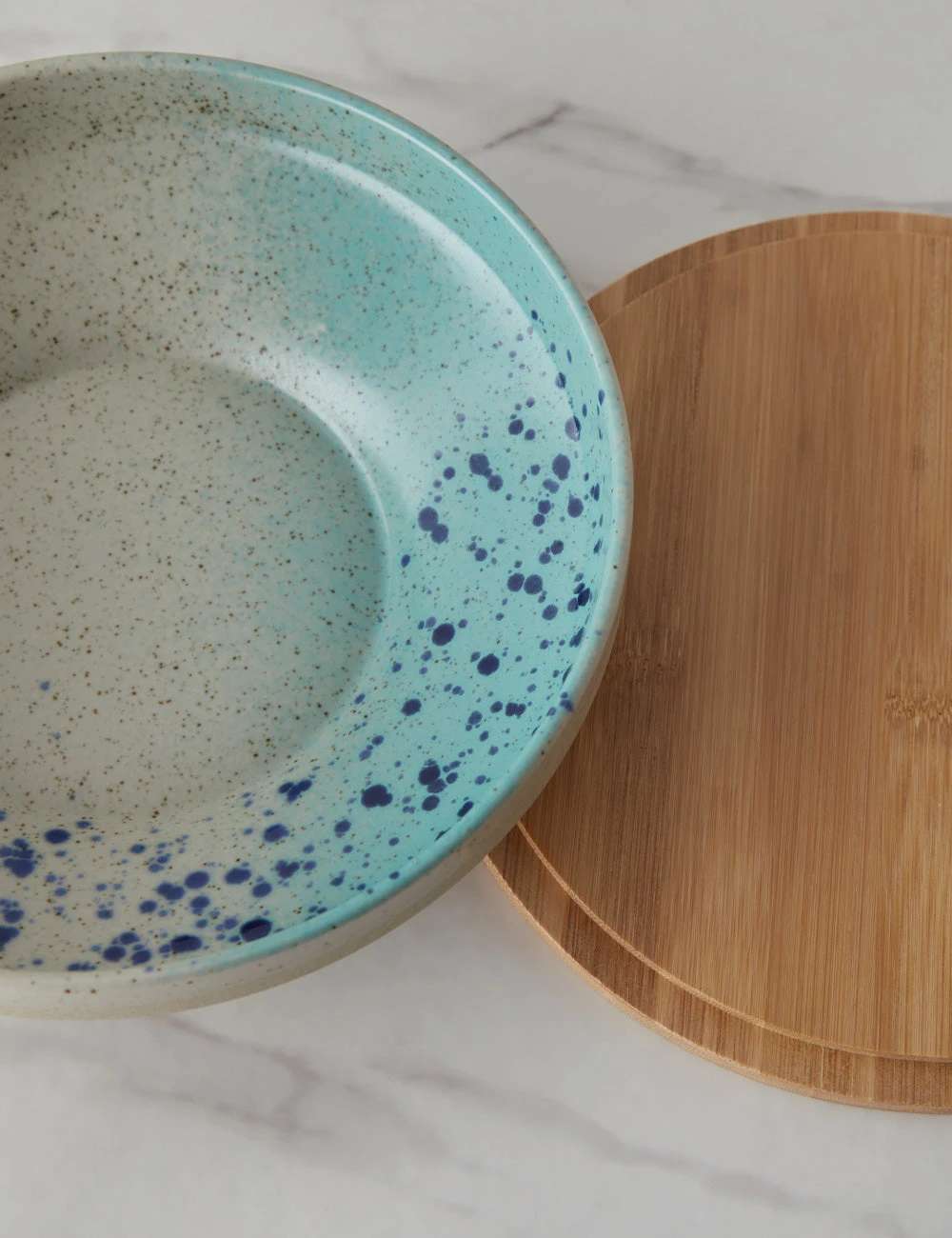 This versatile stoneware bowl with a bamboo lid offers a timeless touch for a modern kitchen. The reactive glaze adds a unique finish to the clean-lined design making this shallow bowl a stylish feature with practical appeal for counter and table.