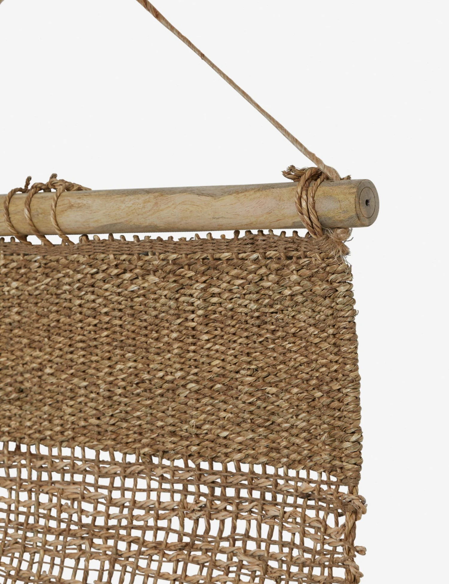 Woven with natural jute and hemp fibers this wall hanging is a meditation on organic elegance. Its broad design will instantly add a rich tactile presence to your wall decor.