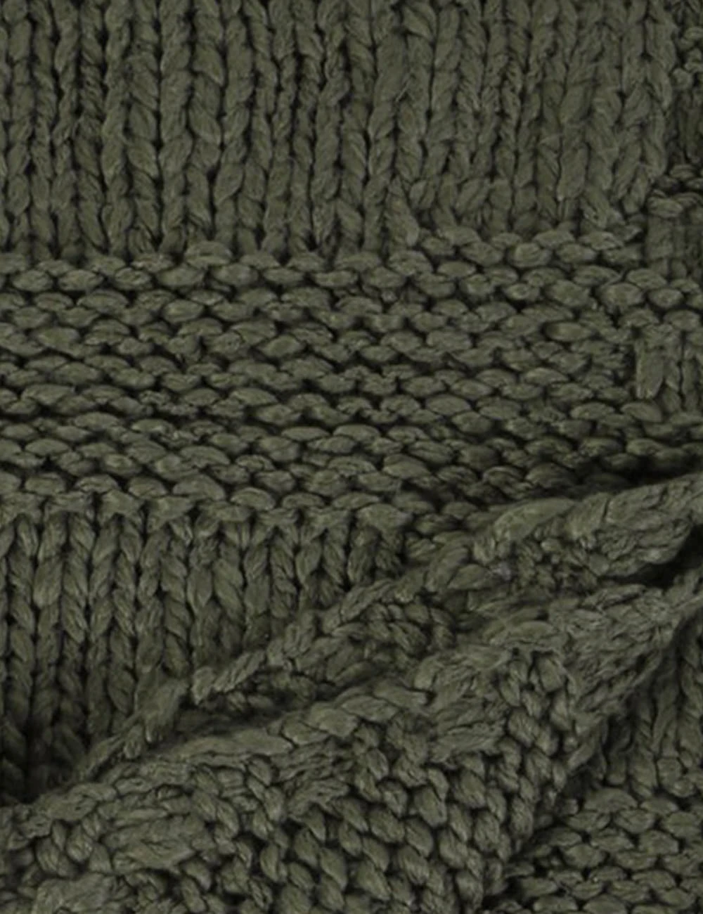 With a chunky knit in alternating weaves, this throw offers an irresistible texture to your favorite seat. Pom poms add a chic touch for an extra cozy everyday blanket with a stylish edge.