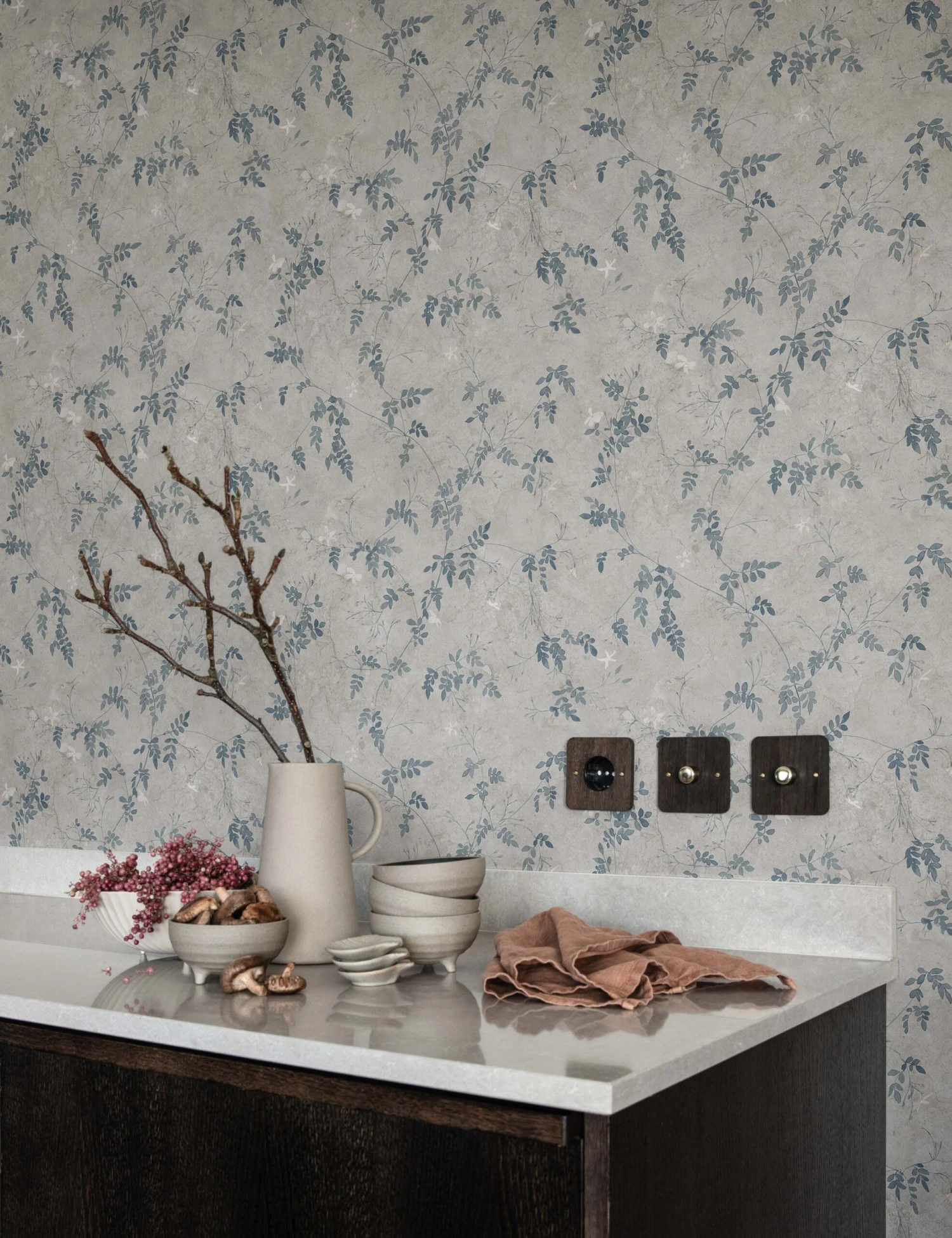 Layer character and texture into your decor with this beautiful home wallpaper design. Jasmine sprigs twine up a stucco-inspired backdrop creating a timeless wallpaper with always fresh appeal.
