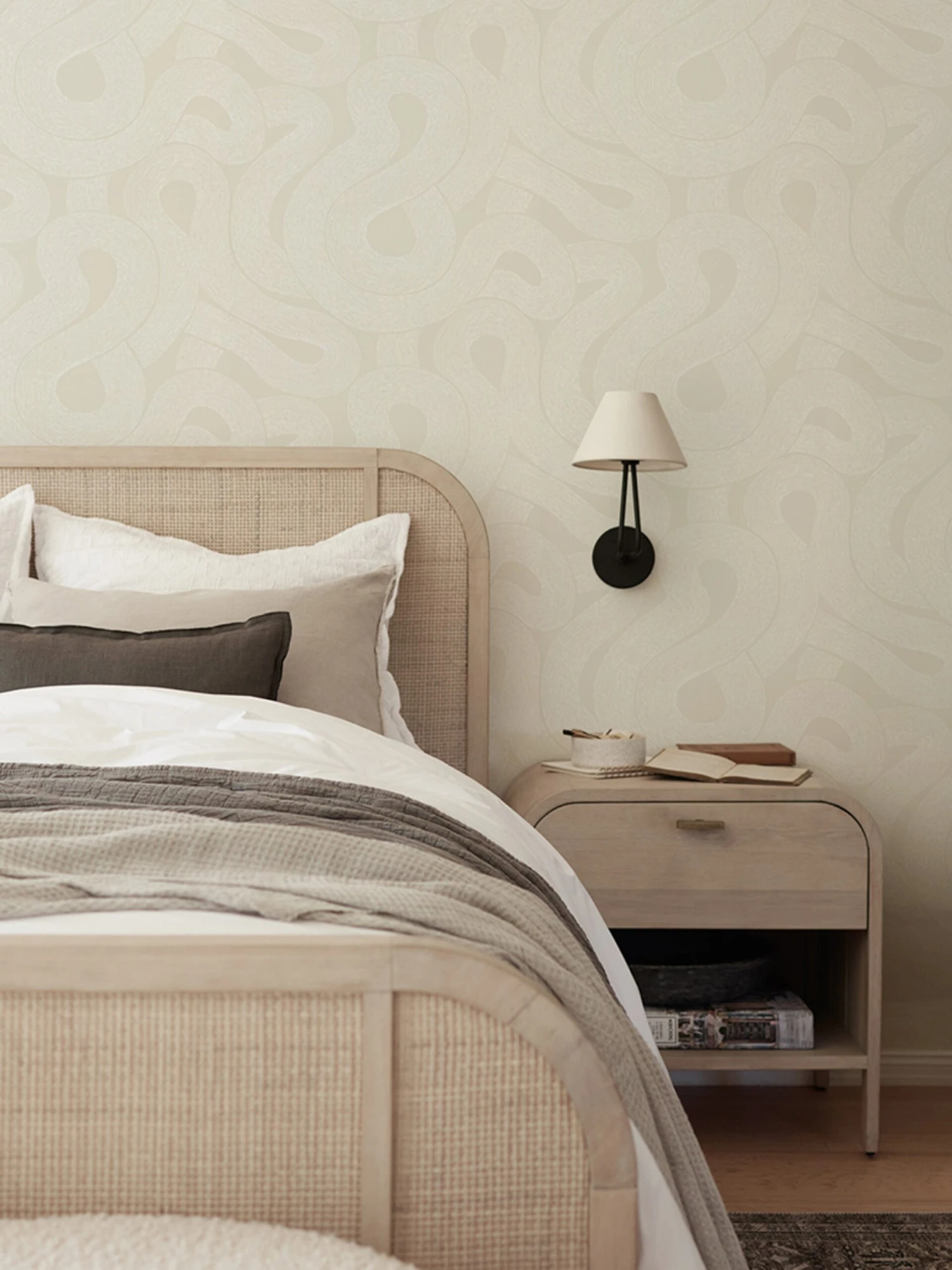 A subtle, minimalistic design with wave-like movement makes this wallpaper an instant favorite. The textured elements are inspired by the raked patterns found in Japanese Zen gardens!
