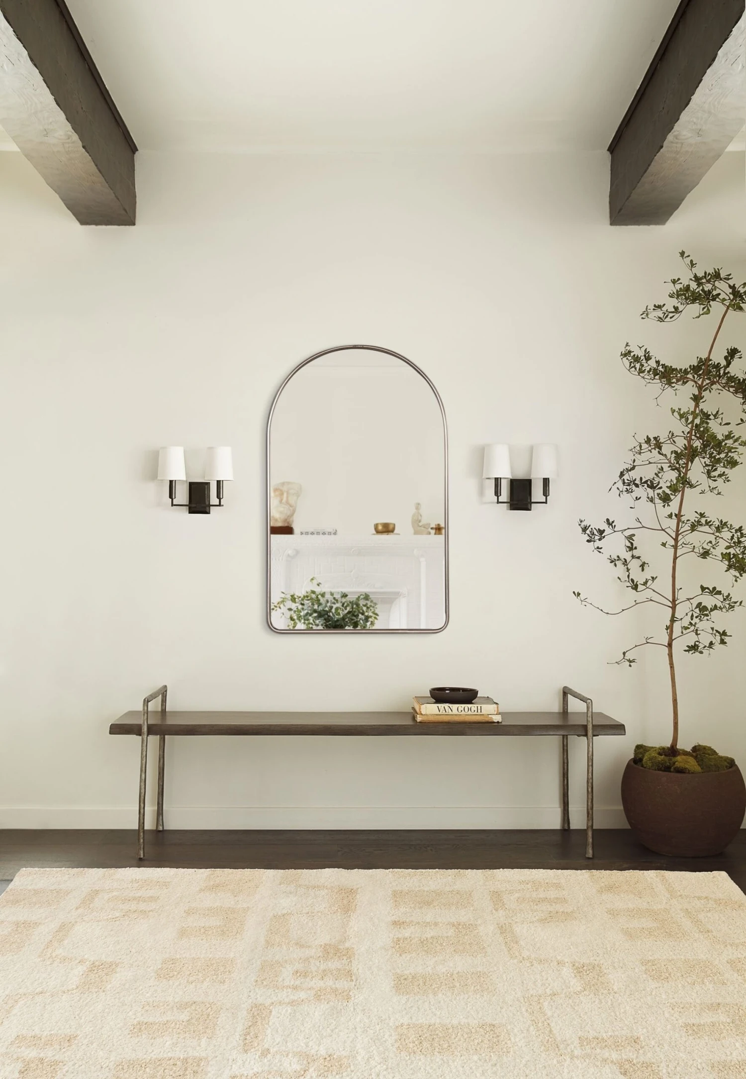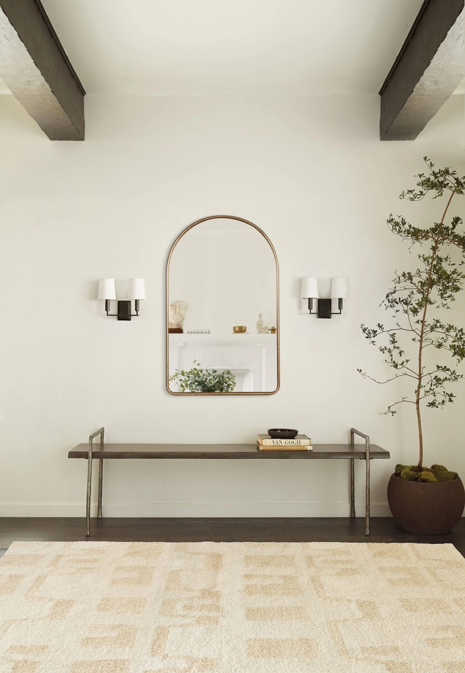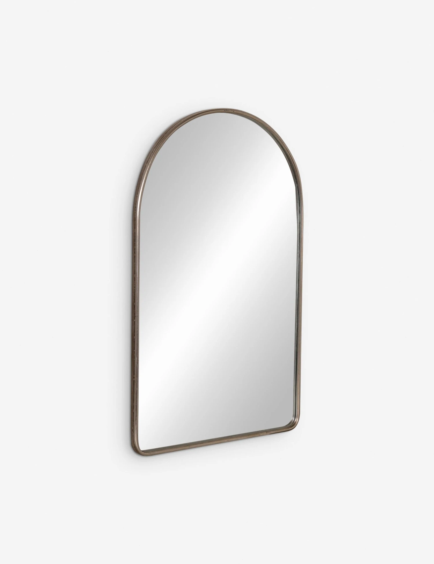 A simple, timeless wall mirror you can add to any room, featuring a metal frame with rounded corners and an arched design.