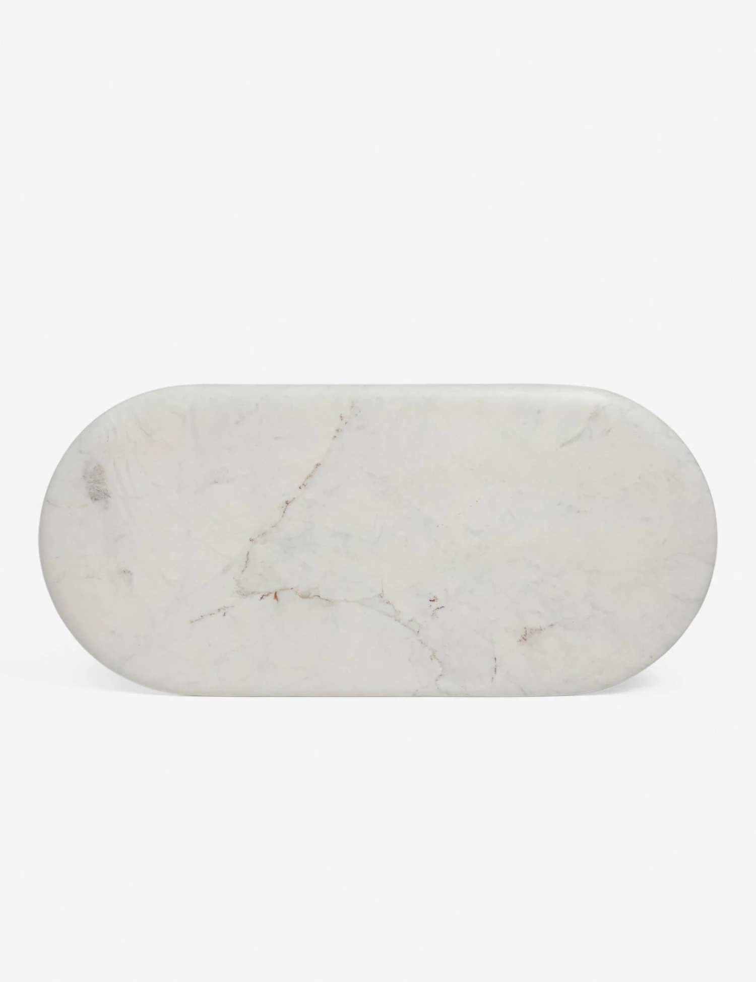 Elegance is in the mix with our Shields coffee table. Two columnar legs clad in oak offer a natural complement to the oval marble top—a spacious surface with no sharp corners, perfect for small-space design.