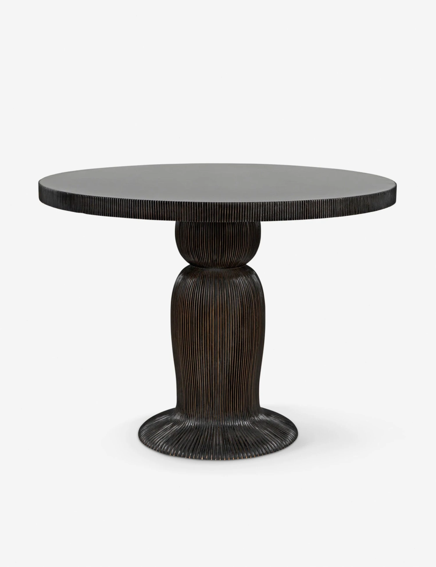This mahogany wood dining table features a fluted veneer hand rubbed in a black finish for a flowing silhouette with endless textural allure. We love this round pedestal table for a chic breakfast nook or stylish kitchen addition.